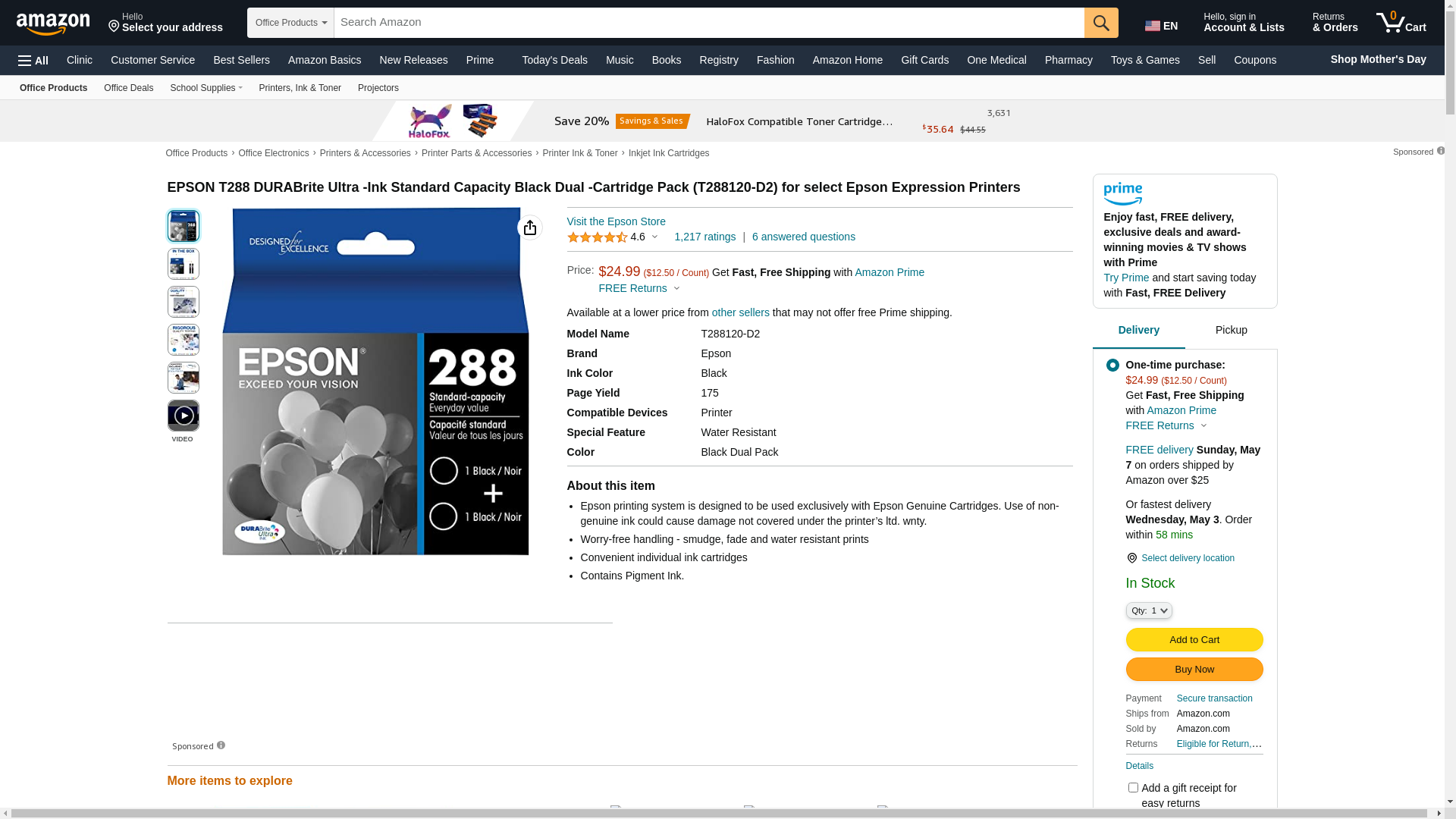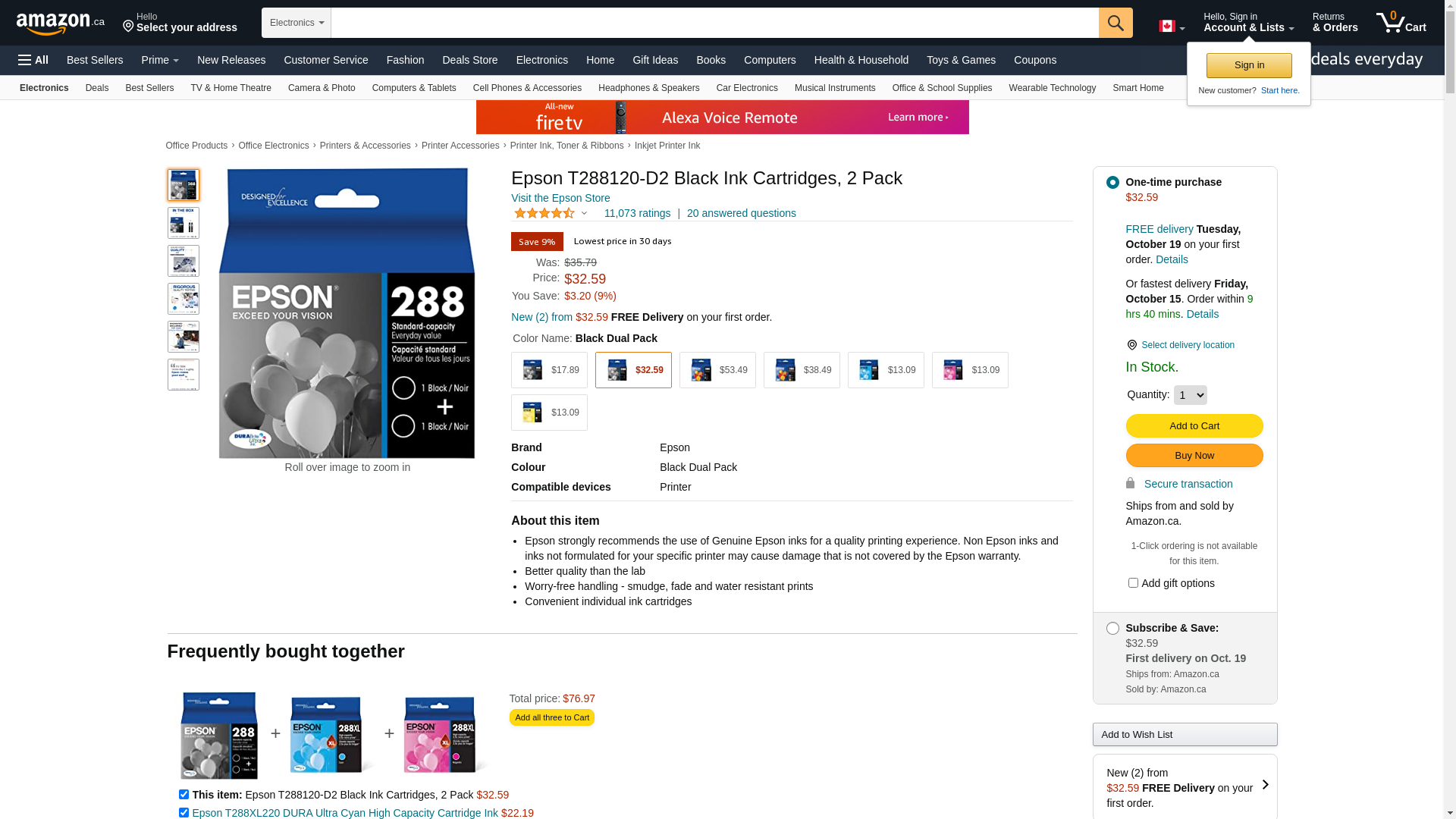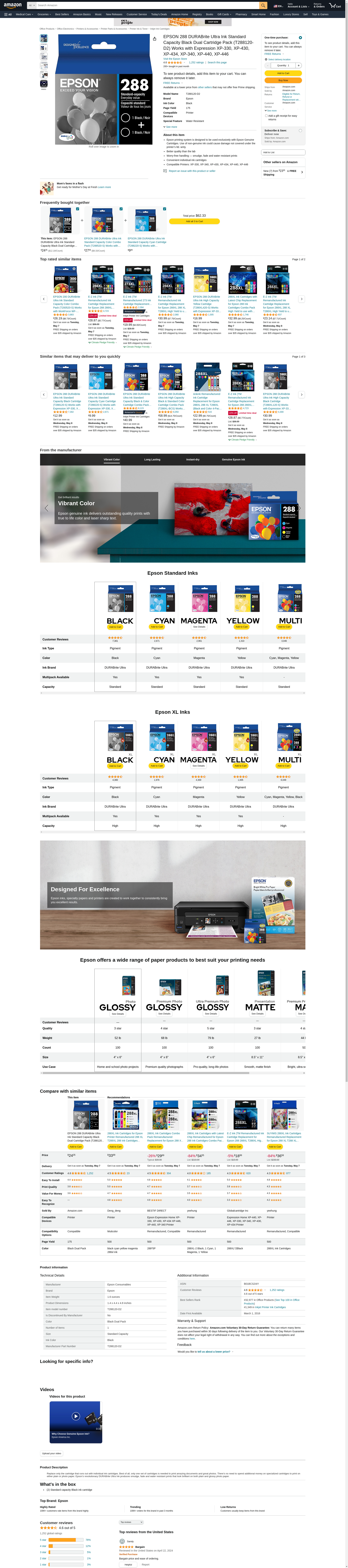 EPSON 288 DURABrite Ultra Ink Standard Capacity Black Dual Cartridge Pack (T288120-D2) Works with Expression XP-330, XP-430, XP-434, XP-340, XP-440, XP-446