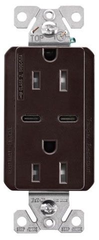 Eaton TRUSBC15B-BOX USB-C Charger with Duplex Receptacle, Brown