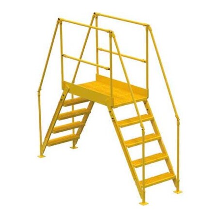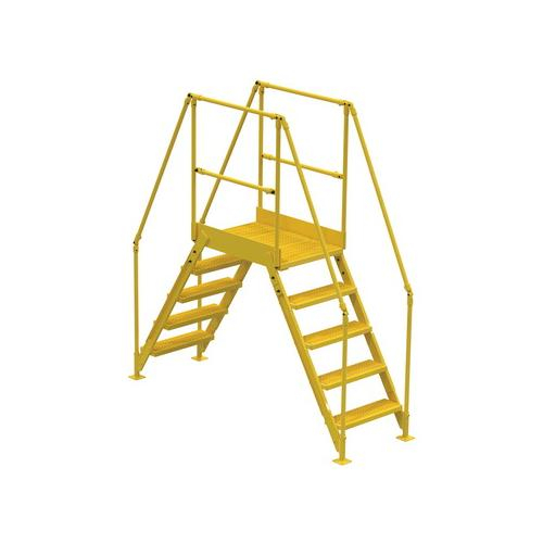 Vertical Clearance 48 In., Span 26-1/2 In., Platform Height 50 In., Platform Depth 36 In., Number of Steps 5, Bottom Width 29-1/4 In., Load Capacity 500 lb., Overall Span 91-1/2 In., Overall Height 92-3/4 In., Handrail Height 42 In., Step Tread Serrated, Step Width 24 In., Step Depth 7 In., Material Welded Steel, Finish Powder Coated, Color Yellow, Standards OSHA 1910.21, 1910.24