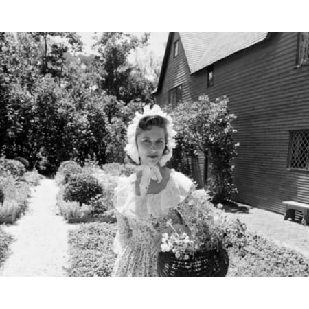 Stretched Canvas Art - Mid adult woman wearing bonnet standing in summer garden - Medium 18 x 24 inch Wall Art Decor Size.