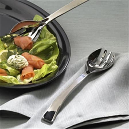 Our broad assortment of items gives you a variety of options for every type of dining occasion. Whether you operate a quick-serve restaurant a casual dining cafe or fine catering establishment the look of Glimmerware can enhance your presentation and complement the overall decor of your dining area or event. A stunning Design with a remarkable high-gloss finish. Sleek Stylized handle enhances any buffet setting. Elegant arch complements every food presentation. Luxuriously curved head is fresh and modern. Size: 10". Color: Silver. 100 per Pack.