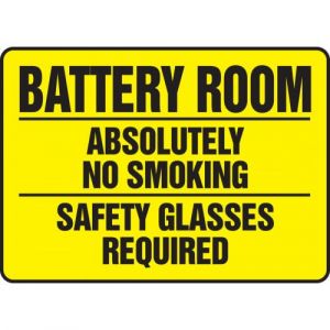 Battery Room Absolutely No Smoking Safety Glasses Required 10" x 14" - MELC527VP - Jendco Safety Supply