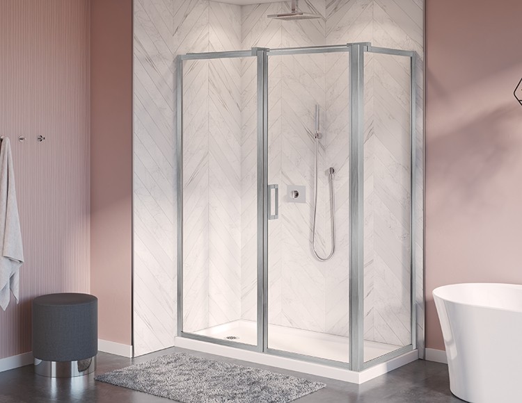 FLEURCO ELE26348-25-40-79 ELERA 64 INCH X 44 1/2 INCH 2 SIDED IN AND OUT PIVOT DOOR AND FIXED PANEL WITH RETURN...