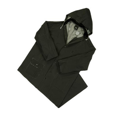 Limited Flammability - PVC over Polyester 60" Rider Coat, Detachable Hood - Black 4160BFR/L - First Industrial Supplies