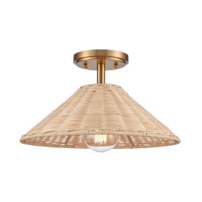 Elk Home 14-inch Rydell Semi Flush - EC89754/1 Semi Flush Mount in Natural Rattan and Brushed Gold - LED Bulb and Dimmer Compatiable, Coastal and Nature Inspired/Organic Décor Ceiling Light Fixture