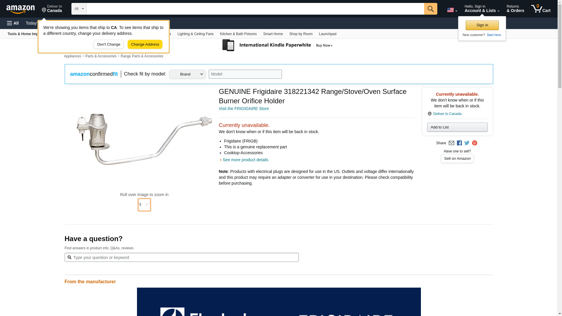 GENUINE Frigidaire 318221342 Range/Stove/Oven Surface Burner Orifice Holder
