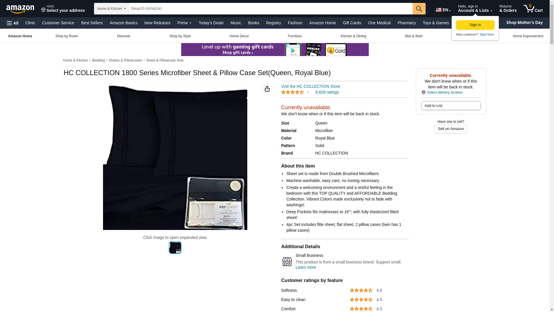 HC COLLECTION 1800 Series Microfiber Sheet & Pillow Case Set(Queen, Royal Blue)