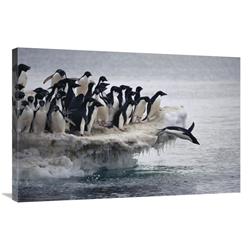 Global Gallery GCS-395645-2436-142 24 x 36 in. Adelie Penguin Leaping Into Sea From Ice Apron, Franklin Island,