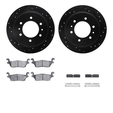 8512-93002, Rotors-Drilled and Slotted-Black w/ 5000 Advanced Brake Pads incl. Hardware, Zinc Coated