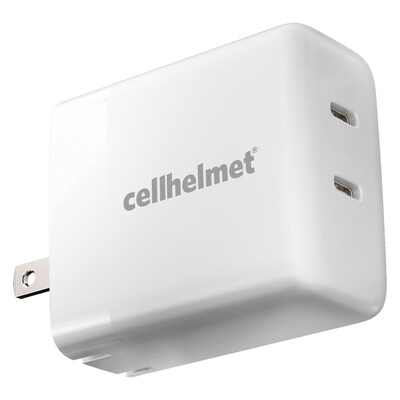 cellhelmet Dual Wall Black Charger with 2 USB-C Ports, 20-Watt, White (WALL-PD-20W-C-C) | Quill.com