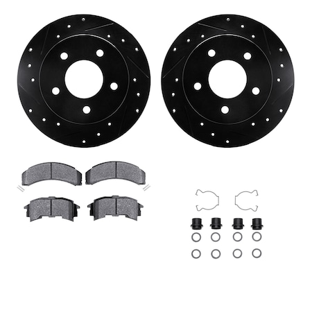Dynamic Friction Company Rear Brake Rotors-Drilled and Slotted-Black with 5000 Advanced Brake Pads includes Hardware 8512-52040