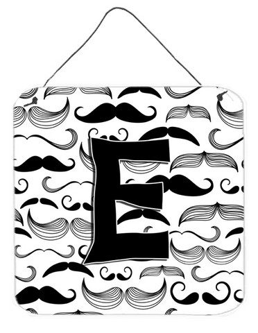 Caroline's Treasures CJ2009-EDS66 Letter E Moustache Initial Wall or Door Hanging Prints Aluminum Metal Sign Kitchen Wall Bar Bathroom Plaque Home Decor, 6x6, Multicolor