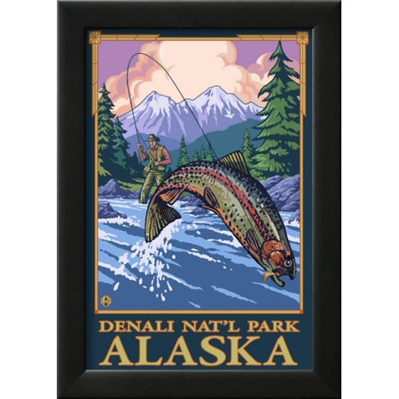 <ul> <li>Title: Fly Fishing Scene, Denali National Park, Alaska</li> <li>Artist: Lantern Press</li> <li>Paper Type: Art Print</li> <li>Product Type: Framed Art Print</li> <li>Framed in SOHO Black</li> <li>Arrives ready-to-hang for fast, simple installation</li> <li>Framed Size: 12x17 in.</li> <li>Handcrafted in the USA</li> </ul>