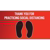 Sterling Social Distancing Carpet Decal, English, Thank You For Practicing Social Distance, Black/White on Red, 12" x 18" | Grand & Toy