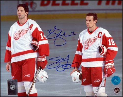 AJ Sports World YZES10602D STEVE YZERMAN & BRENDAN SHANAHAN Dual Signed Detroit Red Wings 8x10 Photo