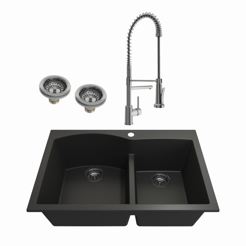 BOCCHI 1602-504-2019SS KIT: 1602 CAMPINO DUO DUAL MOUNT GRANITE COMPOSITE 33 INCH 60/40 DOUBLE BOWL KITCHEN SINK &...