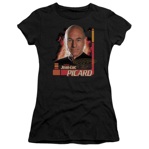 Trevco Star Trek-Captain Picard - Short Sleeve Junior Sheer Tee - Black, 2X