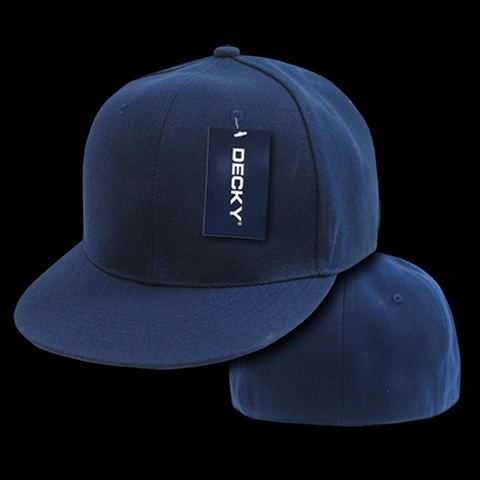 Decky RP2-PL-NVY-28 Flat Bill Fitted Cap, Navy, Size 7.63