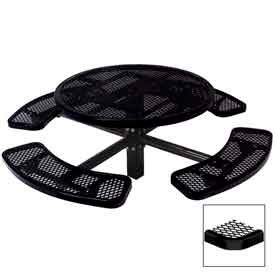 Ultra Play P The 46" round diamond pattern table has an all welded frame with heavy duty 4" x 4" center post and 2-7/8" support arms. Features: -Pinic table. -Constructed of coated steel. -Durable thermoplastic coated planks and powder coated frame. -Diamond pattern round table. -4" x 4" Square center post, 2-7/8" round arm post. -All mig welded frame, in-ground mount. -Umbrella hole standard. -Overall dimensions: 30" H x 78" W x 78" D. Specifications Frame Color/Coat Color: Black/Black