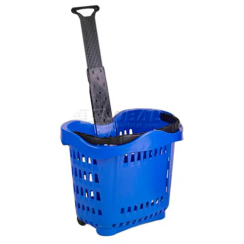 VersaCart ® Plastic Rolling Shopping Basket 43 Liter Blue, Pack Qty of 6 - Pkg Qty 6