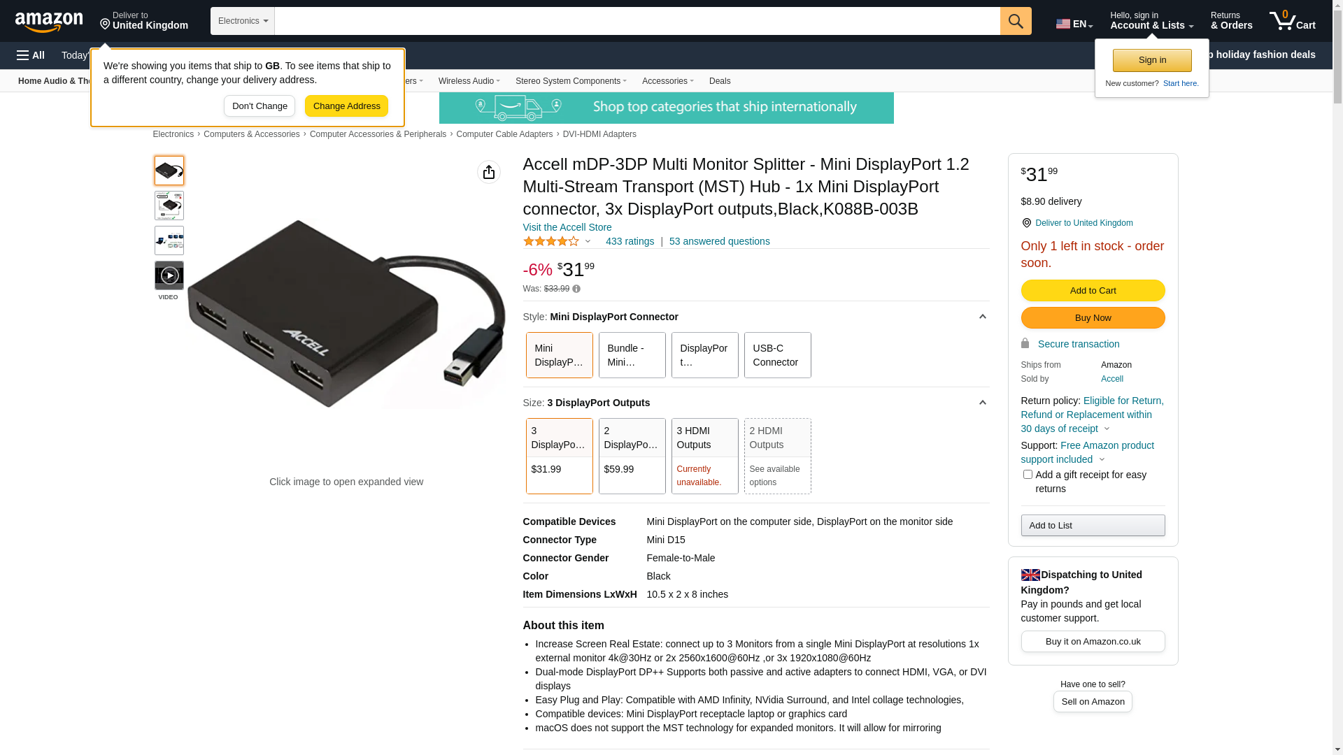 Amazon.com: Accell mDP-3DP Multi Monitor Splitter - Mini DisplayPort 1.2 Multi-Stream Transport (MST) Hub - 1x Mini DisplayPort connector, 3x DisplayPort outputs,Black,K088B-003B : Electronics