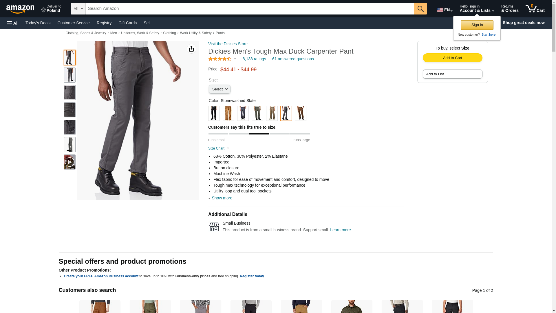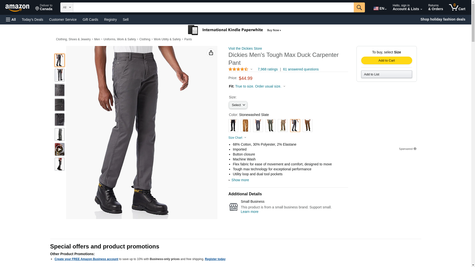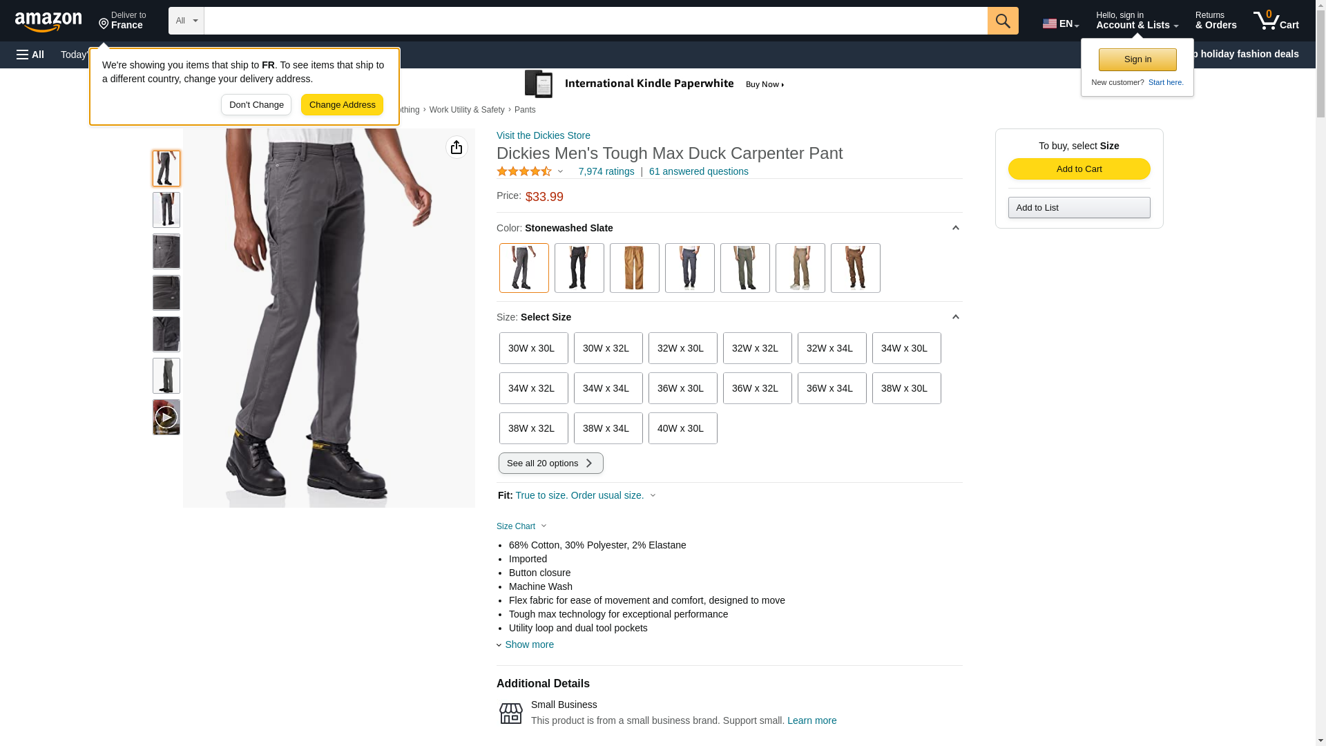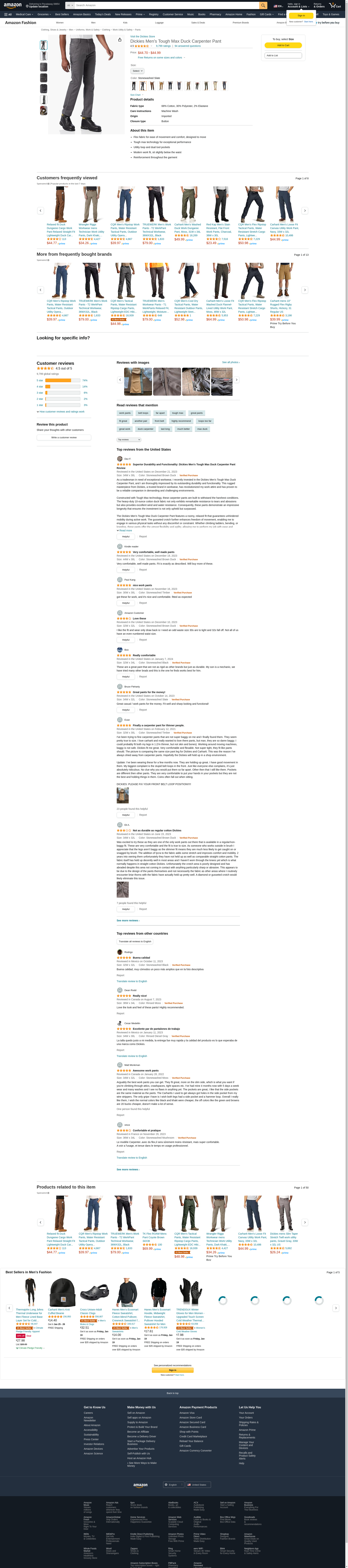 Dickies mens Tough Max Duck Carpenter Pants, Stonewashed Slate, 34W x 30L US