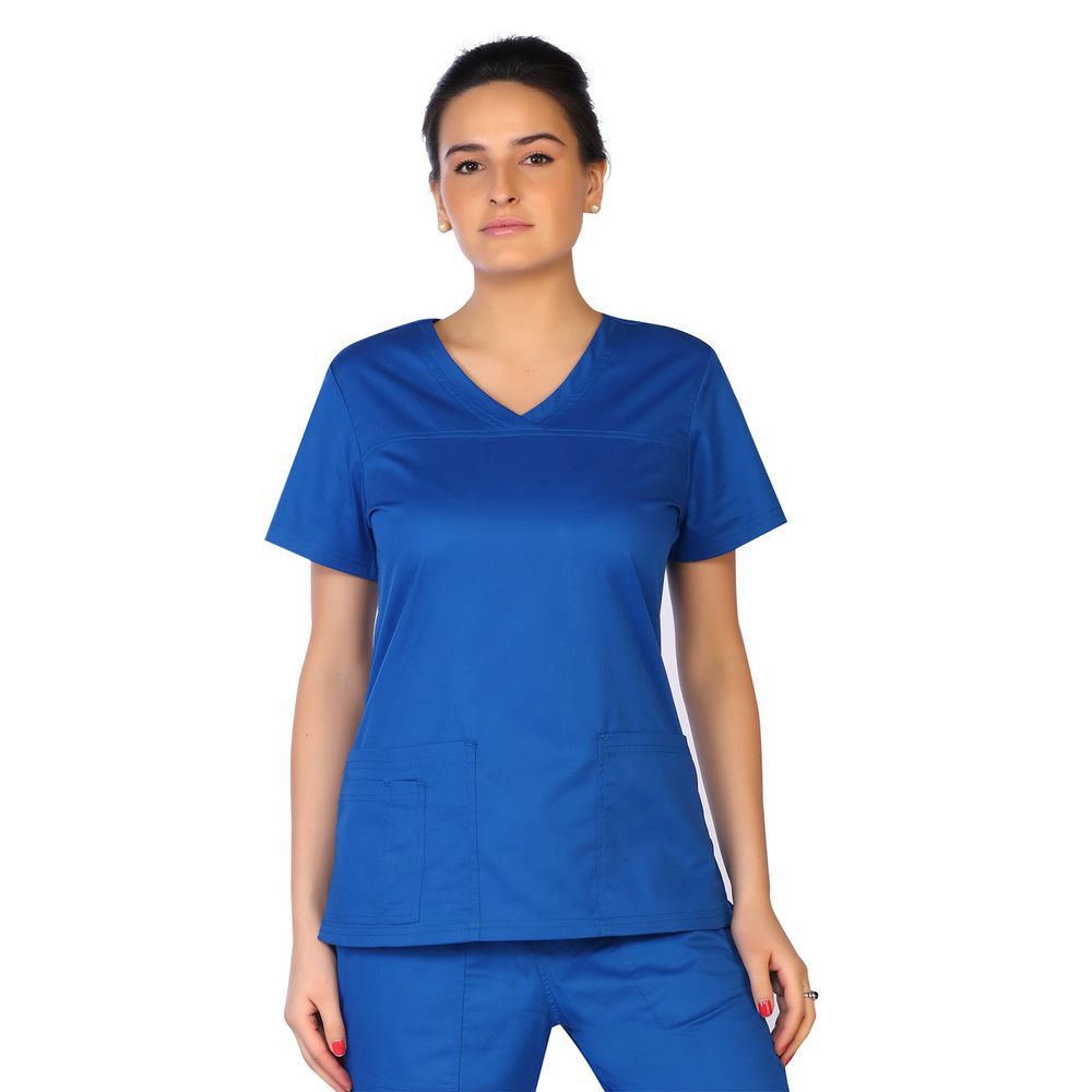LifeThreads Contego Women's Stretch V-Neck Scrub Top -Royal Blue,S