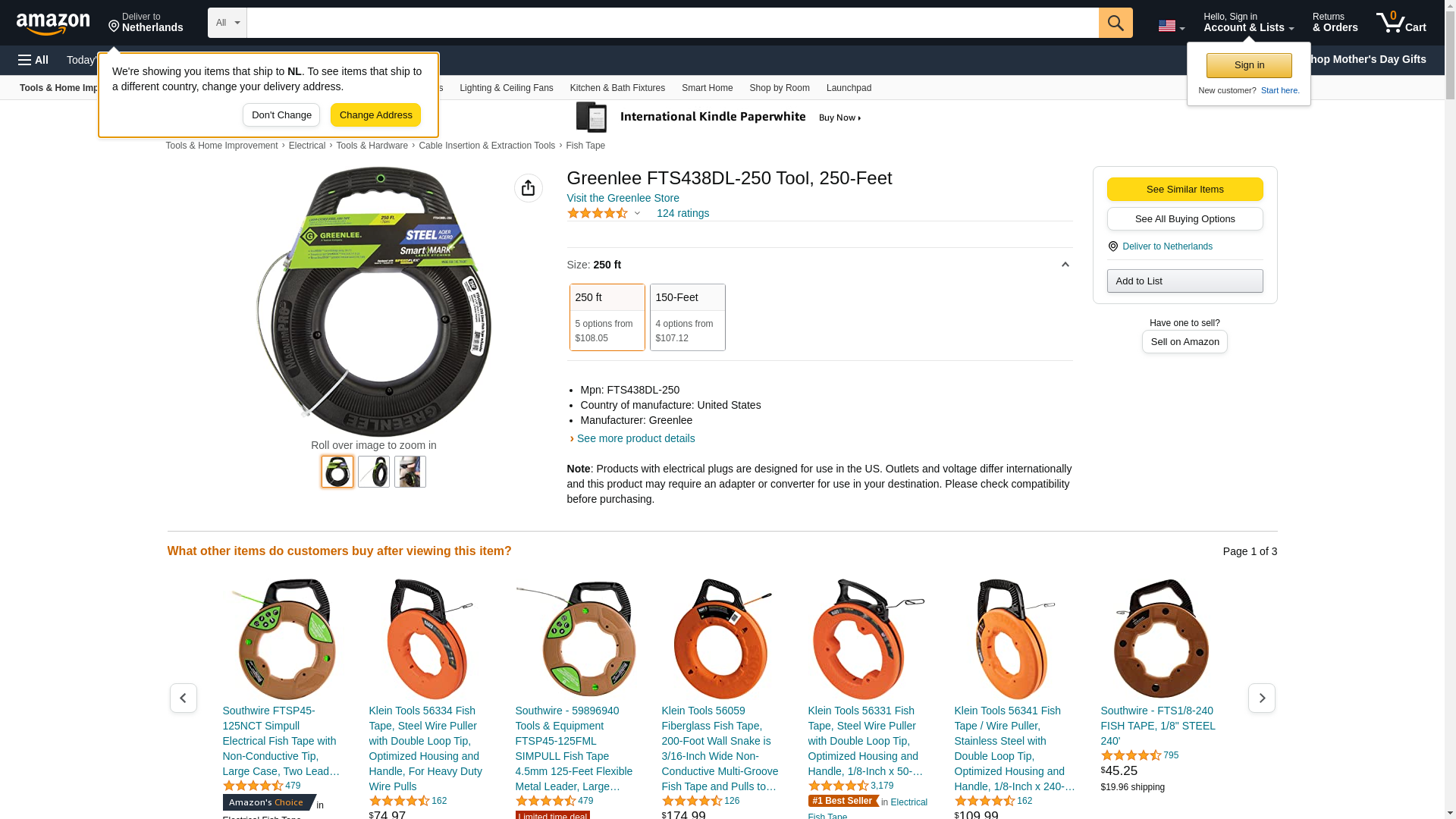 Greenlee FTS438DL-250 Tool, 250-Feet