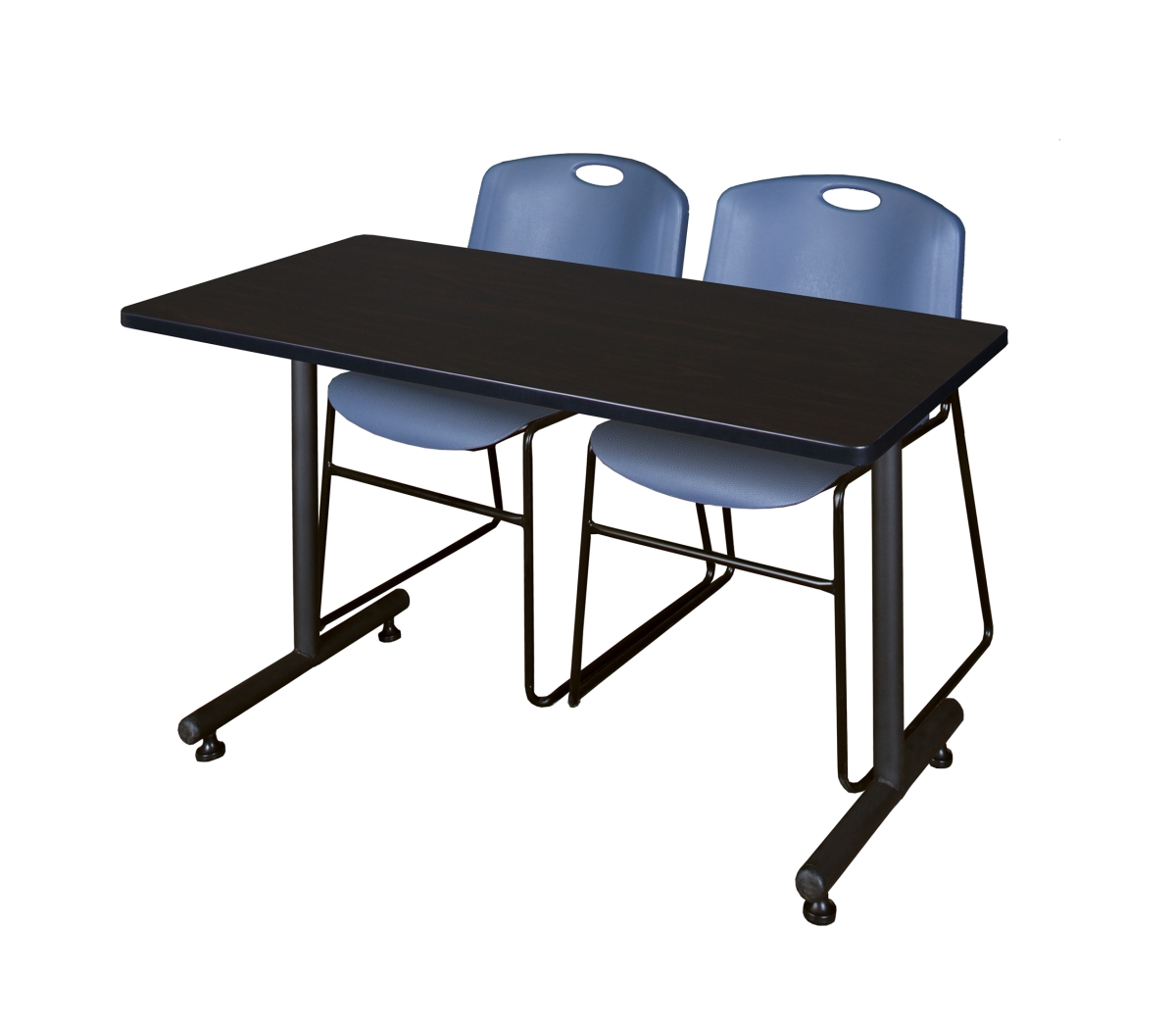 Regency MKTRCT4830MW44BE 48 x 30 in. Kobe Training Table, Mocha Walnut & 2 in. Zeng Stack Chairs - Blue