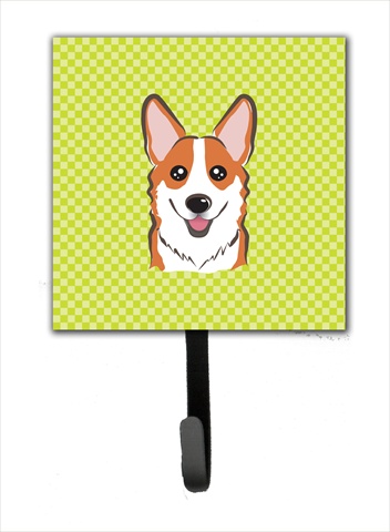 Carolines Treasures BB1316SH4 Checkerboard Lime Green Corgi Leash Or Key Holder, 4.25 W x 7 H In.