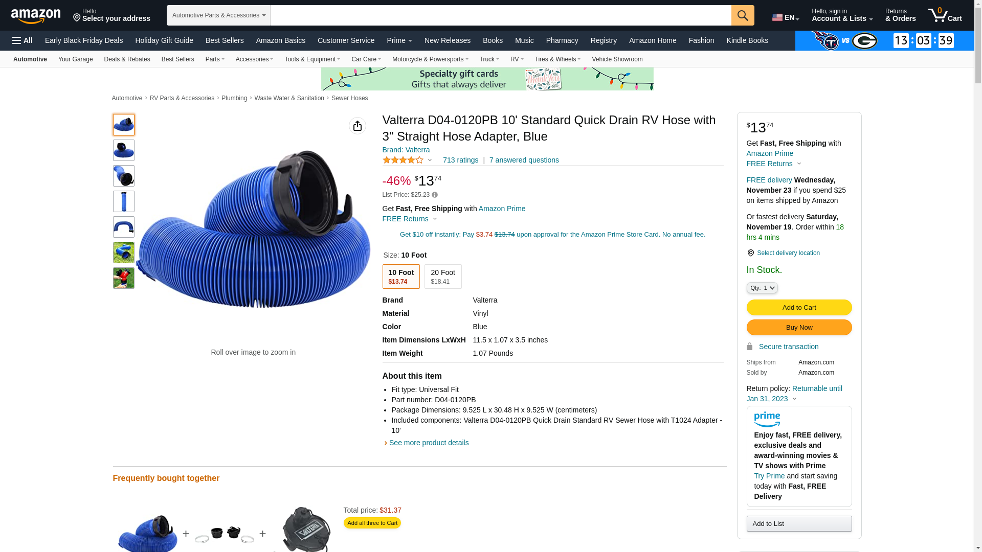 - Included components: Valterra D04-0120PB Quick Drain Standard RV Sewer Hose with T1024 Adapter - 10'