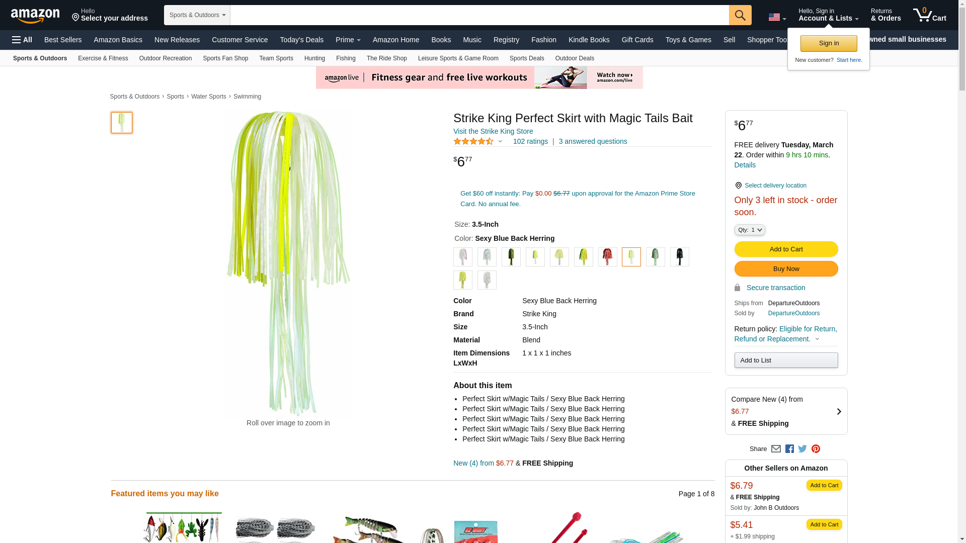 | Feature | "Strike King's Perfect Skirt with Magic tails feature colors designed to flow from top to bottom and to match most popular spinnerbait head colors." |