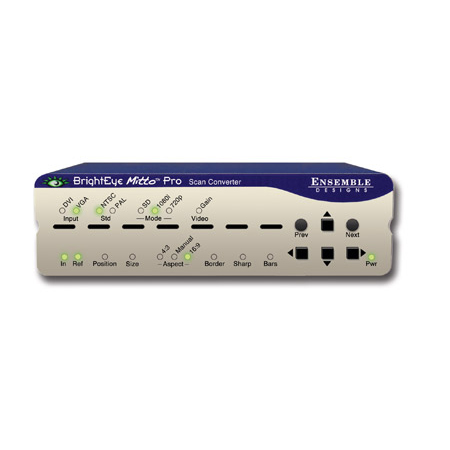 <strong>When is a scan converter not just a scan converter...? When it's an Ensemble Designs BrightEye Mitto 2 Pro Scan Converter!</strong></p><p>Don't let the title fool you! Ensemble Designs has created something greater than the sum of all it's parts. Were you aware that you can use the BrightEye Mitto 2 Pro for Character Generation.... or use Skype, iChat and Facetime in your production or live show! Facebook and YouTube interviews can be brought directly into your video production with ease! You can also convert video from your mobile devices like your iPhone and iPad into SDI digital video. It's also Ideal for PowerPoint and Keynote presentations. The possibilities are endless. </p><p>The BrightEye Mitto family of high performance scan converters provides a new way to take just about any source to 3G, HD or SD SDI video. Computer video can now be used for the most demanding applications including broadcast, high-end military, medical, classroom, church and corporate. All Mitto units accept VGA, DVI and HDMI input signals from PC and Mac computers.</p><p> With six different BrightEye Mitto units to choose from, each with varying types of outputs and capabilities, you have the freedom to explore the best one for your particular video application. All BrightEye Mitto units convert YouTube, Skype video, weather radar, emails and maps to video. Just a small part of the screen, such as a Skype window, can be selected with a mouse and converted to full screen HD. Ensemble uses the latest technology in its proprietary upconversion and filtering and that means you have the best looking video. Compare Mitto to any other scan converter and see the difference!</p>