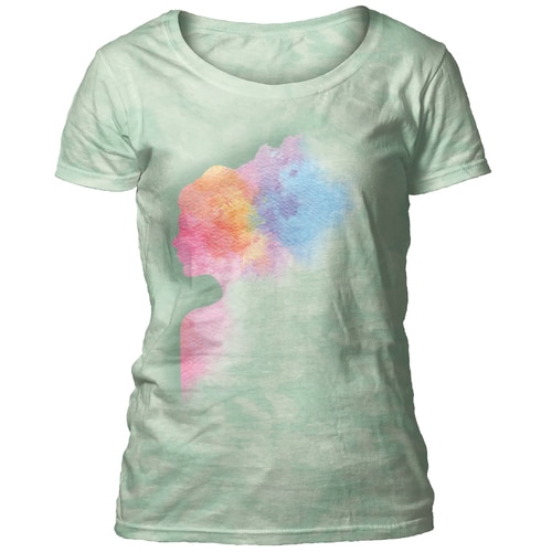 The Mountain 27916102813 Green Rainbow Watercolor Woman Ladies Scoop Neck T-Shirt - Extra Large