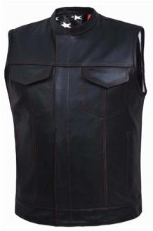 Unik 6669-00-RED-M Premium Leather SOA Style Club Vest with Red Line USA Flag for Men, Red - Medium
