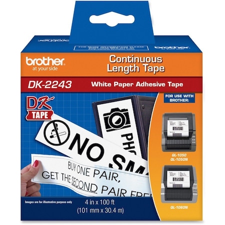 Brother Dk2243 Continuous Length Shipping Label Tape for Ql-1050, 4-Inch X 100 Ft Roll, White