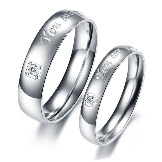 CET Domain SZ17-R075W-7 Titanium Steel You Are My Love Couple Rings- Women-Size 7