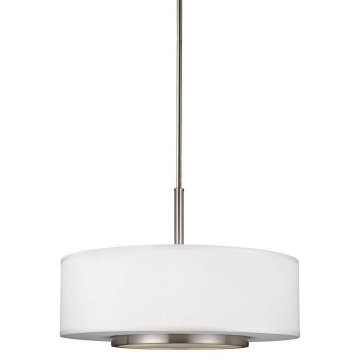 - SOPHISTICATION AND DESIGN: Featured in the decorative Nance collection, this dining room lighting fixtures hanging, with its chandelier-like quality, is the perfect option for brightening up any space in your home. Sea Gull Lighting's Three Light Pendant features satin etched glass diffuser and off-white faux silk fabric shade and adds a touch a style and interest to any room.