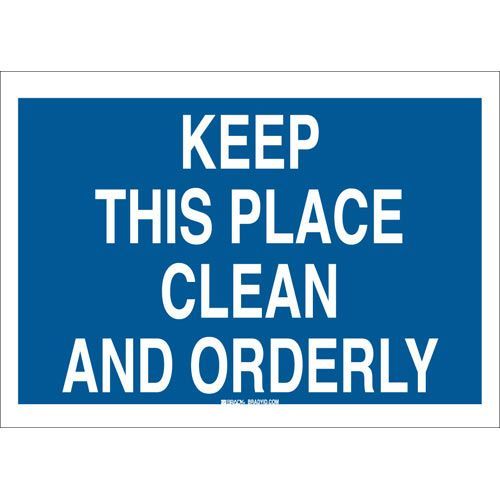 Brady 122474 Keep This Place Clean And Orderly Sign - Light Duty Plastic - White on Blue - 10 x 14 - ME Campbell Co