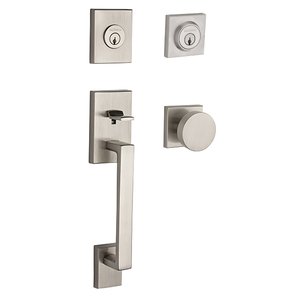 Reserve La Jolla Collection - Double Cylinder La Jolla Handleset with Contemporary Door Knob with Contemporary Square Rose in Satin Nickel by Baldwin Hardware - DCLAJXCONCSR150 | MyKnobs