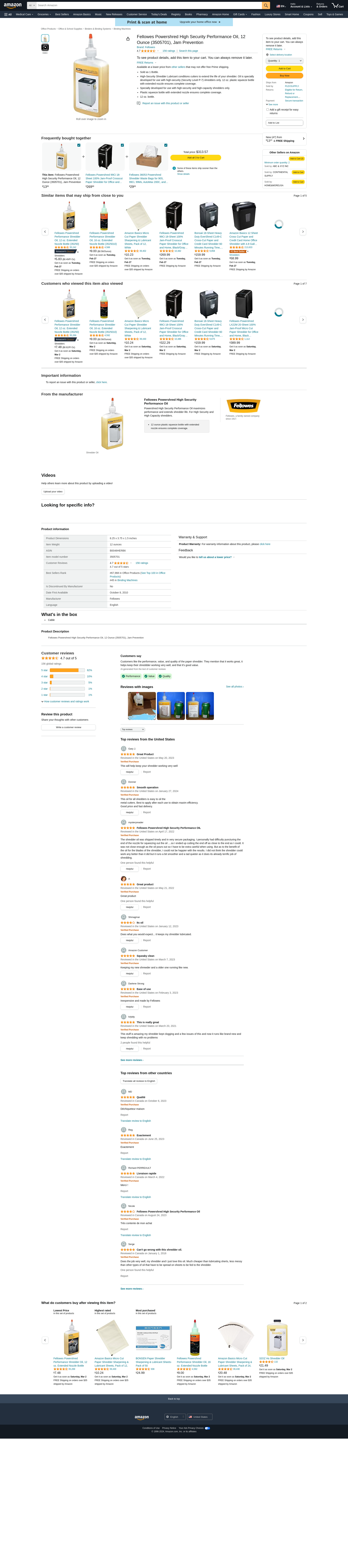 Fellowes Powershred High Security Performance Oil, 12 Ounce (3505701)