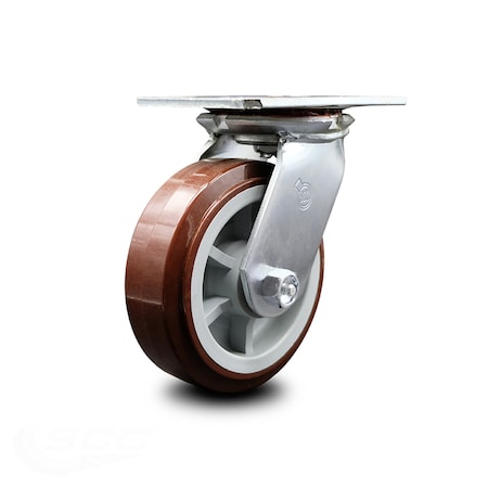 Listing is for one (1) Service Caster Series #35 swivel caster with a 6" diameter by 2" wide polyurethane on polyolefin wheel capable of supporting 900 lbs./caster. When searching for a reliable and durable solution to your caster needs, consider Service Caster Series 35 polyurethane wheel casters. The Service Caster Series #35 features heavy duty non-marking polyurethane tread on a polyolefin core wheel, providing a smooth roll over uneven surfaces without marking or marring floors. These versatile casters are ideal for a wide range of applications, such as dollies, platform trucks, warehouse carts and freight terminals. Or ensure a smooth and secure ride for food service carts, hotel housekeeping carts, and industrial and commercial equipment. Even drywall carts, welding carts, and wall panel carts will be ready to roll on the Series 35, keeping you moving forward.