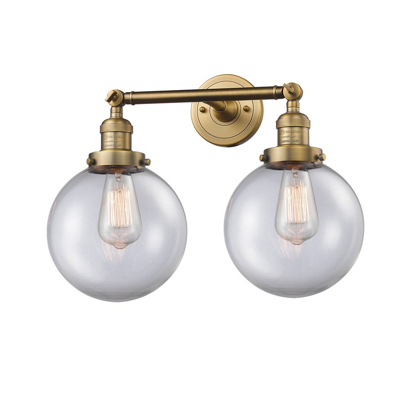 Innovations 208-BB-G202-8 2 Light Bathroom Fixture, Brushed Brass