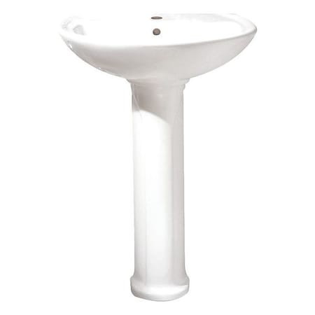 1-Hole Pedestal Bathroom Sink with Center Drain in White
