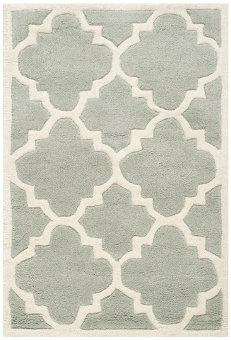 SAFAVIEH Chatham Collection 2'3" x 5' Grey/Ivory CHT730E Handmade Geometric Premium Wool Accent Rug