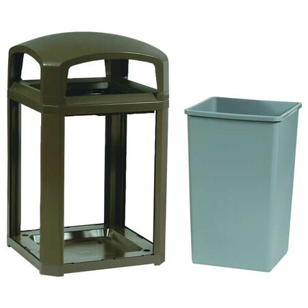 Rubbermaid Commercial Landmark Trash Can with Rigid Plastic Liner, 35 Gallon, Driftwood, FG397000DWOOD
