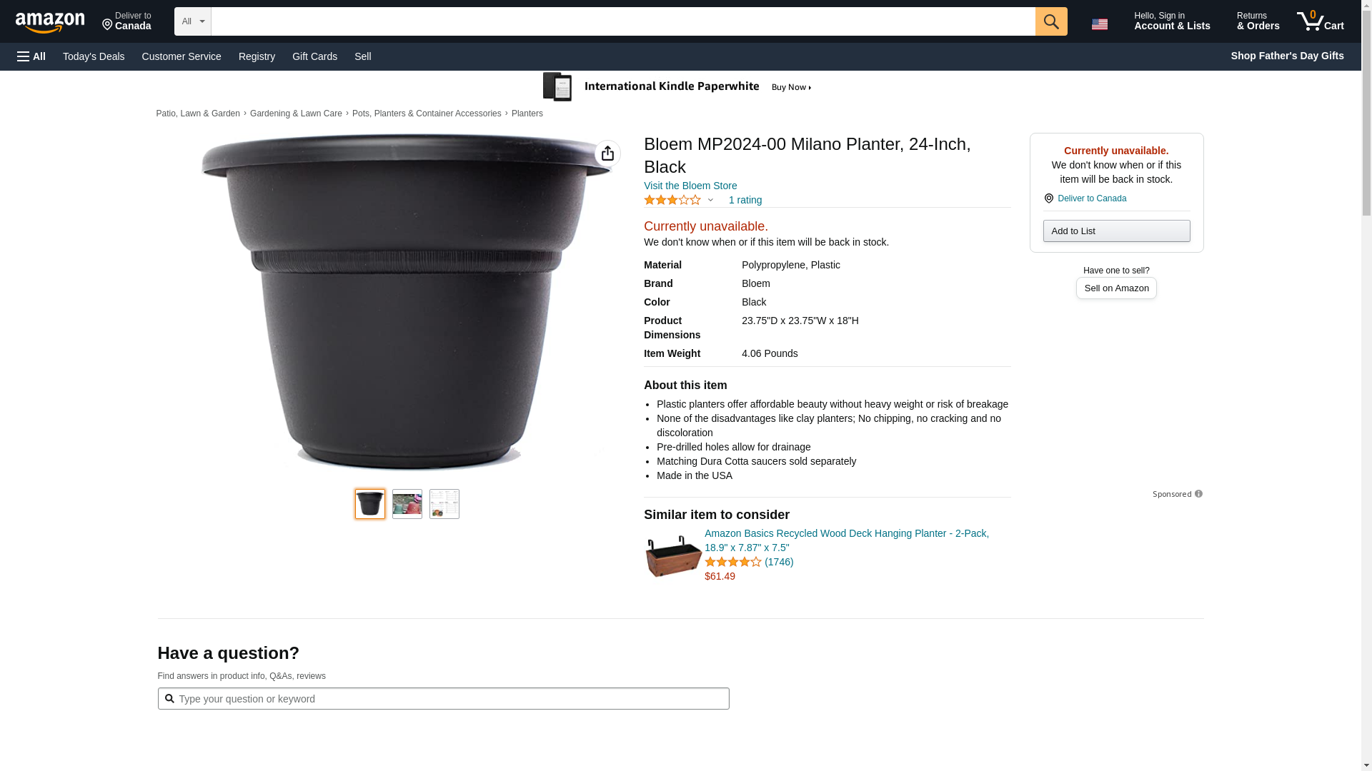 Bloem MP2024-00 Milano Planter, 24-Inch, Black