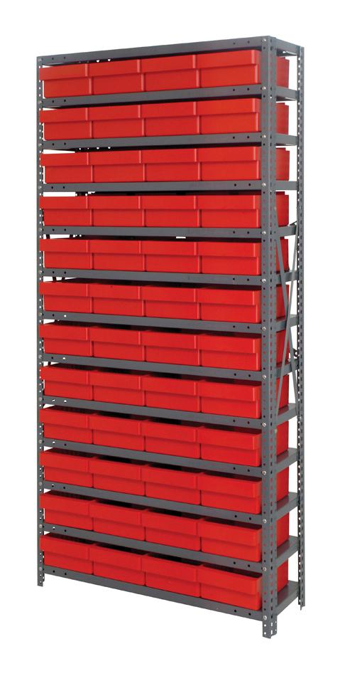 13 Shelf Open Unit W/48 RED Bins