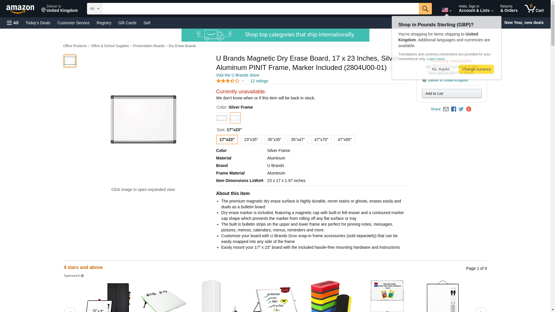 U Brands Magnetic Dry Erase Board, 17 x 23 Inches, Silver Aluminum PINIT Frame, Marker Included (2804U00-01)