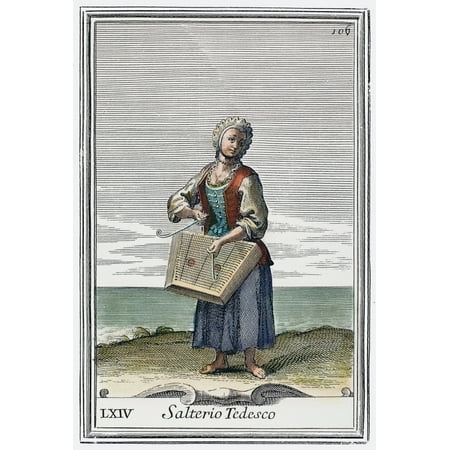 Stretched Canvas Art - Dulcimer, 1723. /Ncopper Engraving, 1723, By Arnold Van Westerhout. - Large 24 x 36 inch Wall Art Decor Size.